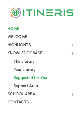 Per accedere alle risorse suggerite per te, clicca sul nome del tuo account, visibile nell'angolo in alto a destra dopo aver effettuato l'accesso, quindi su “Area Personale” e poi su “Suggerite per te” oppure clicca sul banner specifico nella sezione Knowledge Base o sulla voce correlata nel menu laterale.
